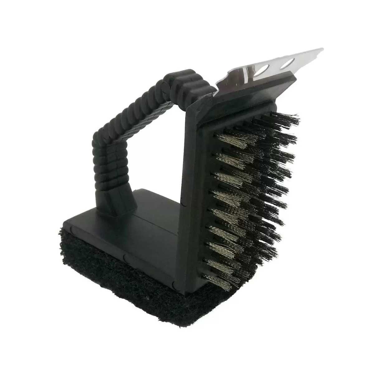 ESCOVA GRELHA INOX/PLÁSTICO 3X1 ESPONJA/RASPADOR H14CM-MIX-