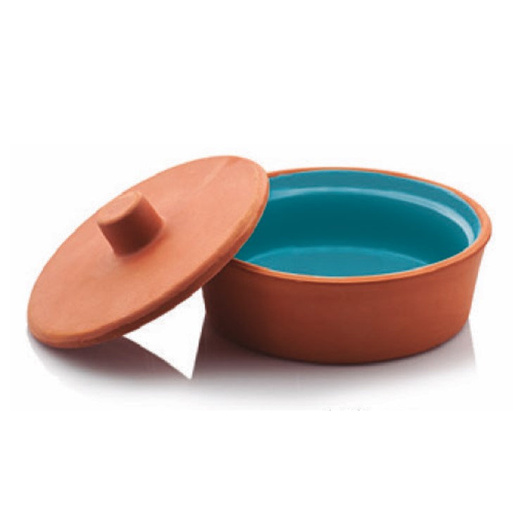 CAÇAROLA TAMPA CERÂMICA REFRATÁRIA Ø15CM H6CM ESMALTE INTERIOR TURQUESA SILIFKE-PDE15%
