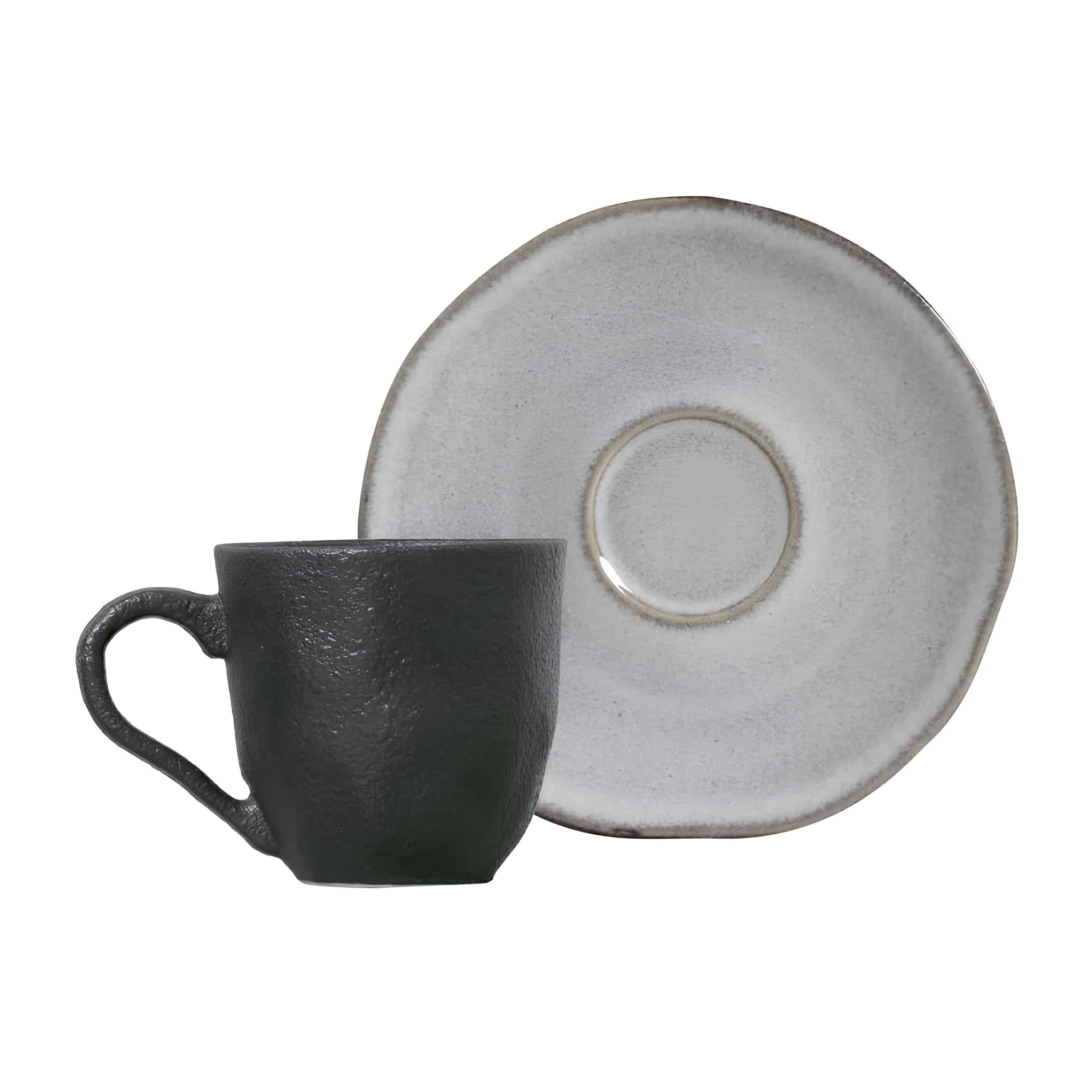 XÍCARA CAFÉ + PIRES STONEWARE 120ML Ø7CM H6,5CM CONCRETO ORGÂNICO -DSC