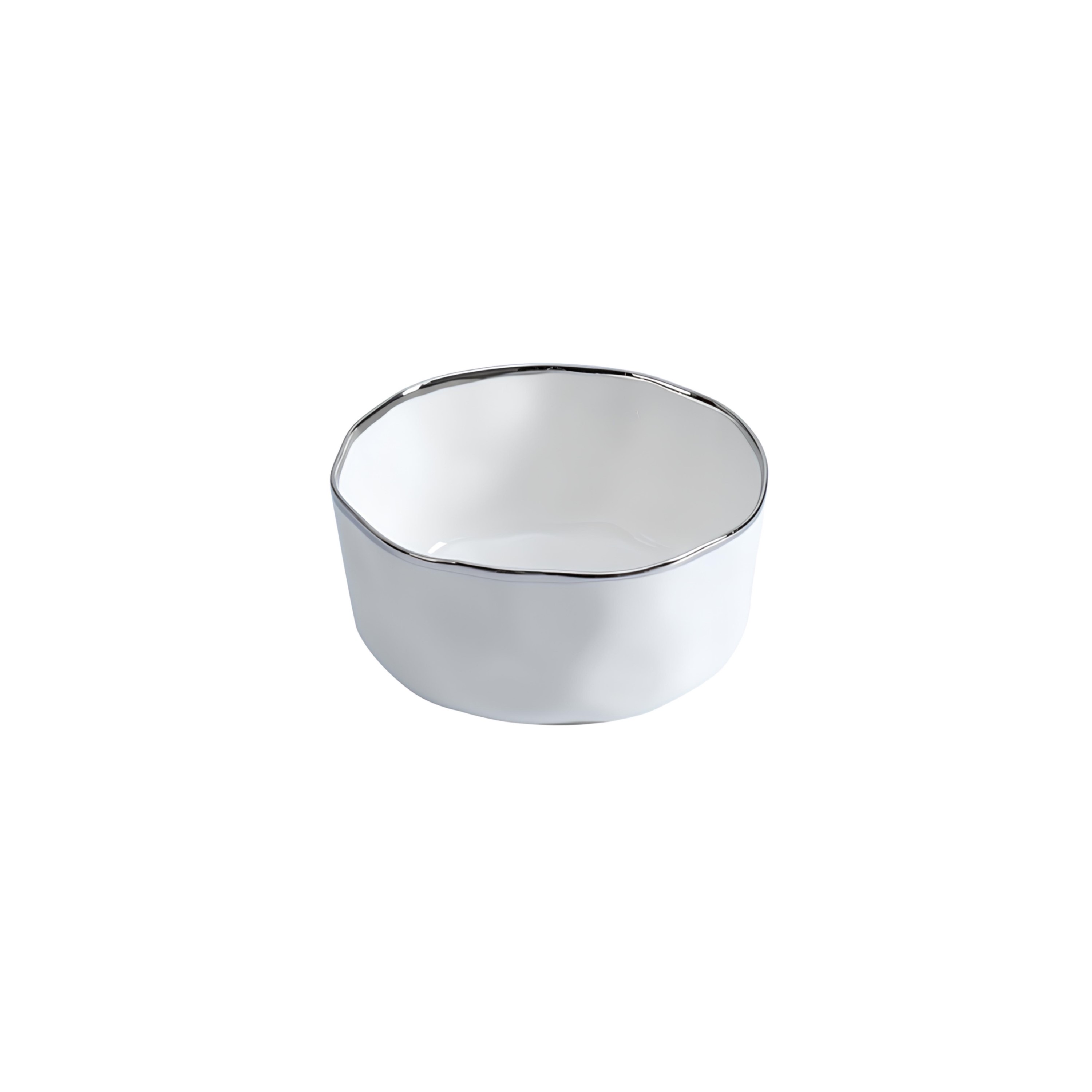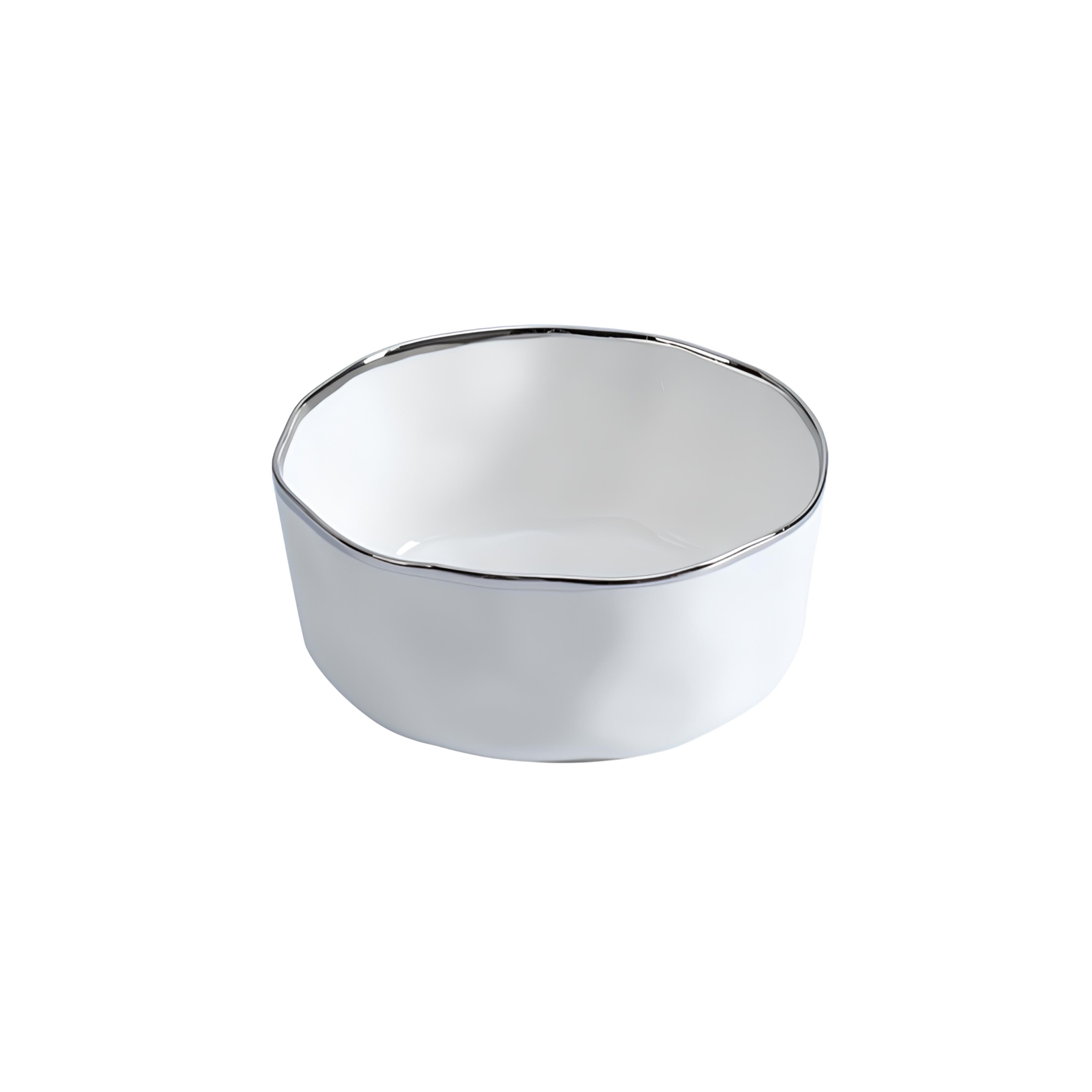 BOWL PORCELANA BORDA TITÂNIO PRATA Ø10CM H6,5CM BIANCA -PDE20%