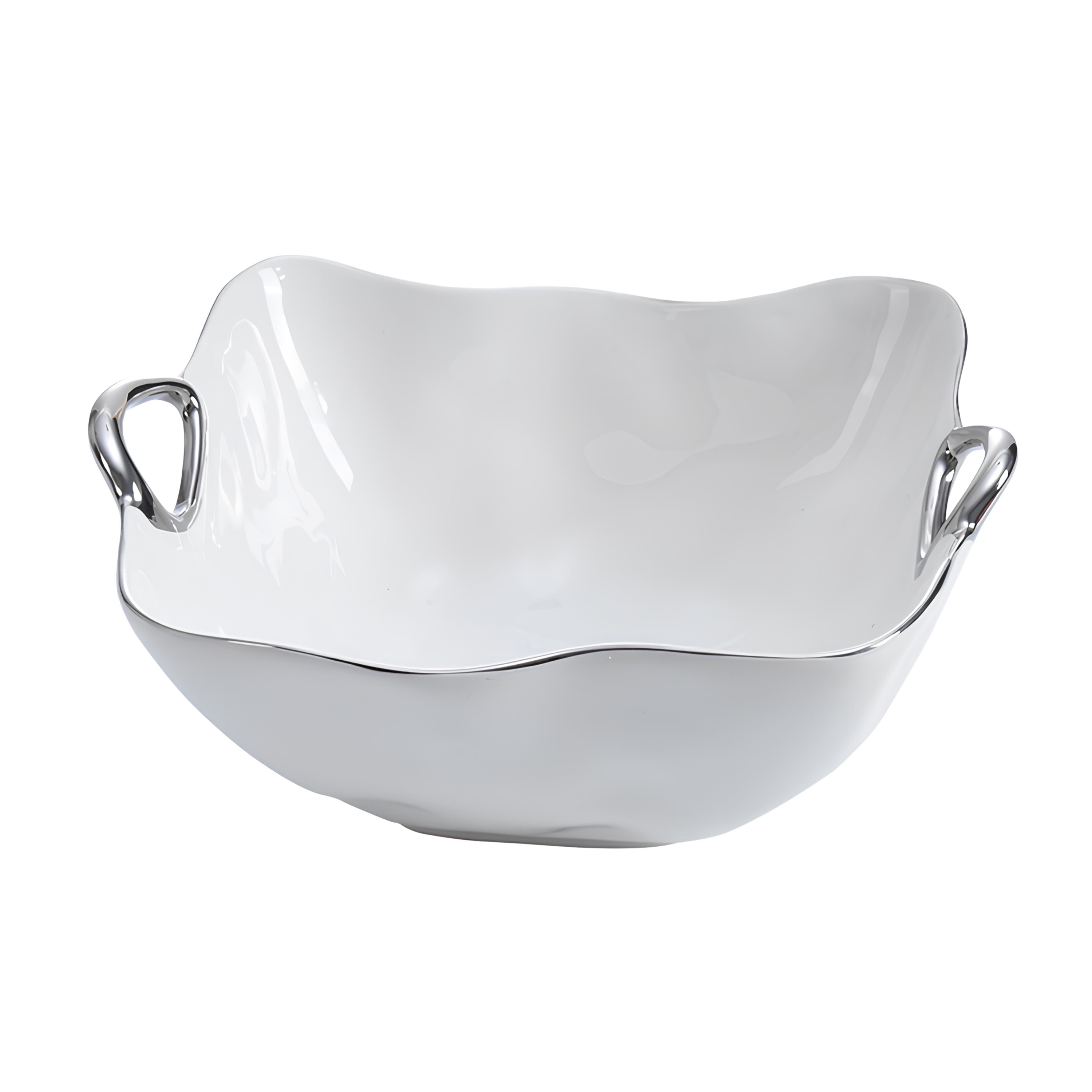 SALADEIRA PORCELANA BORDA TITÂNIO PRATA 28X27CM H10CM SALERNO -MSE-