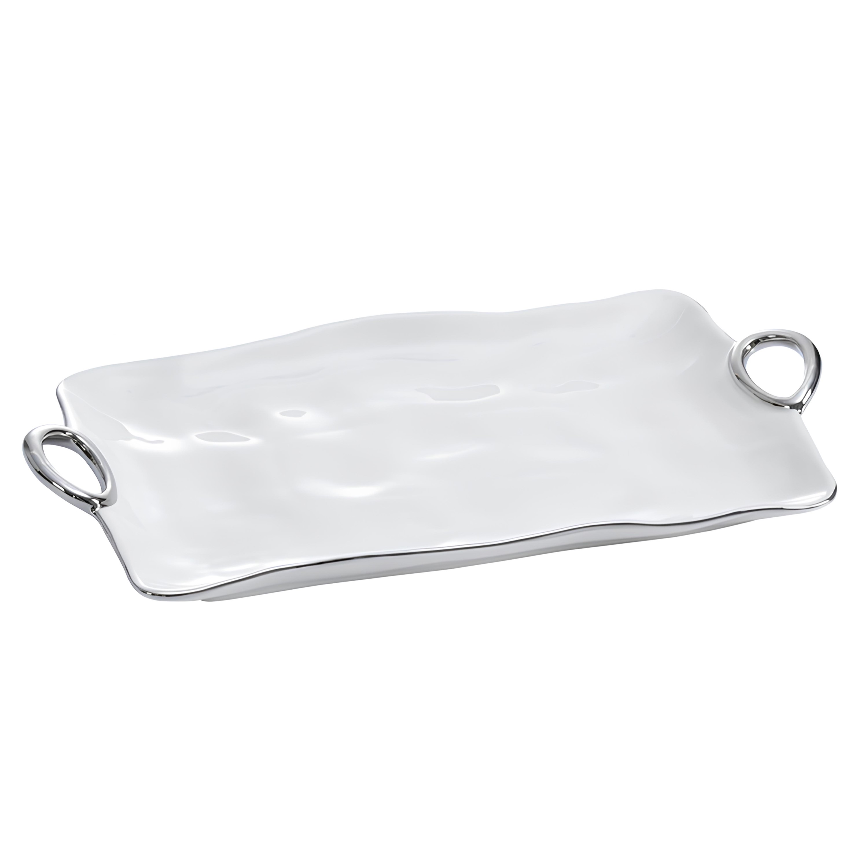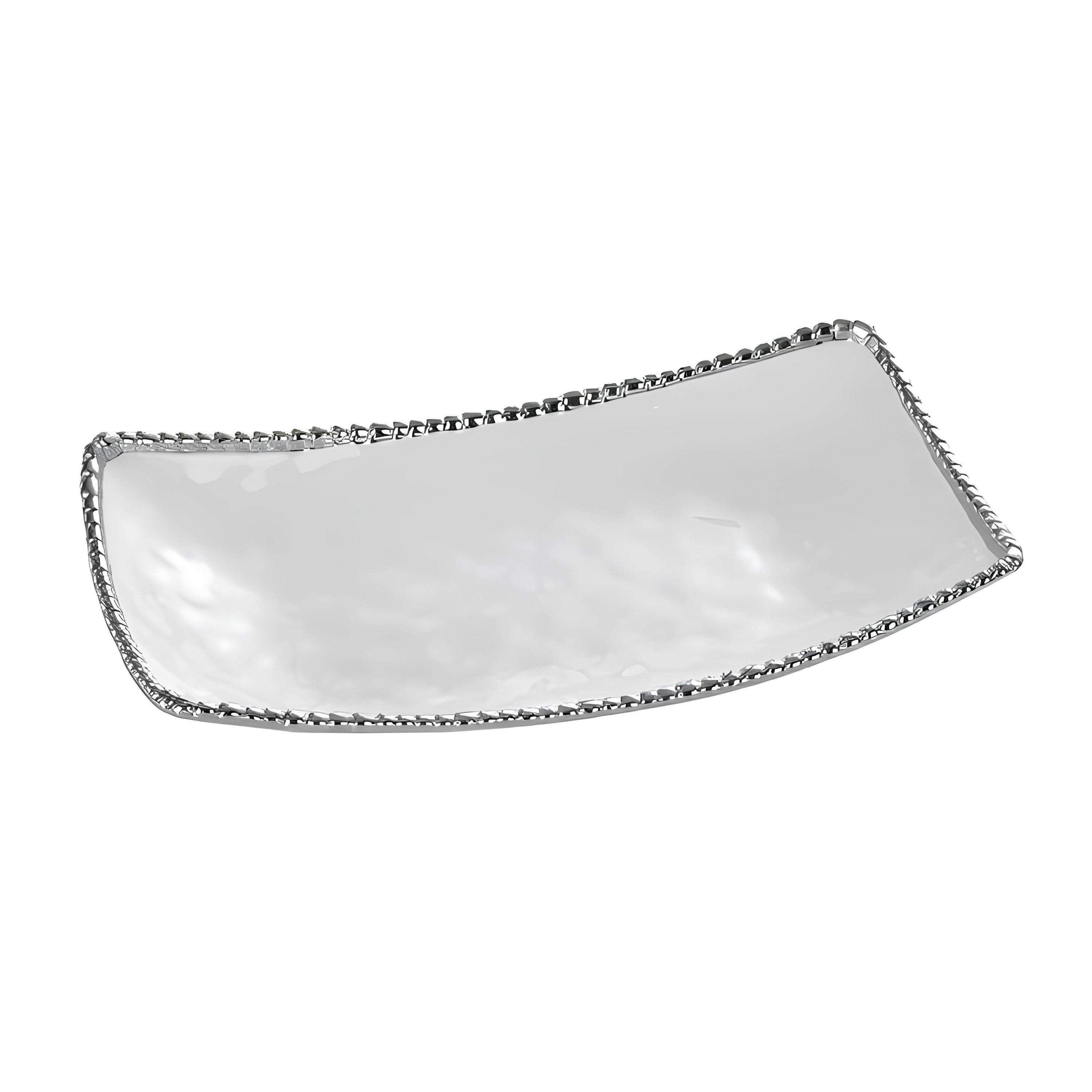 TRAVESSA ALÇAS PORCELANA BORDA TITÂNIO PRATA 44X24CM H4CM -MSE-