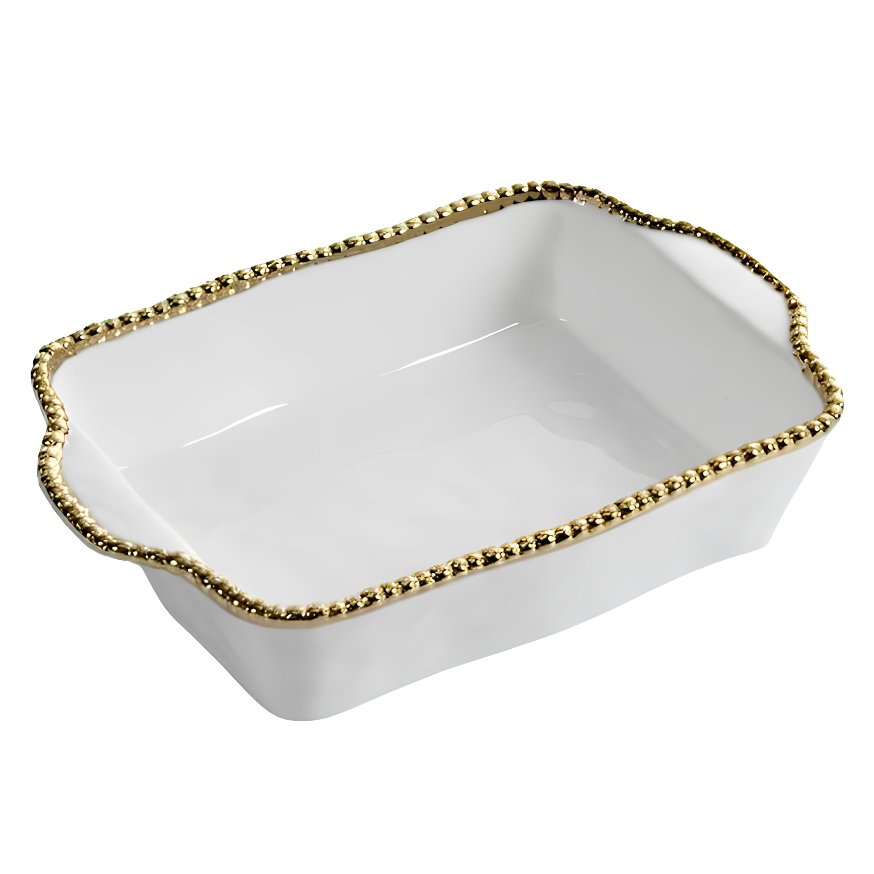 TRAVESSA PORCELANA BORDA TITÂNIO DOURADO 35X23CM H7CM GOLDEN SALERNO -MSE-
