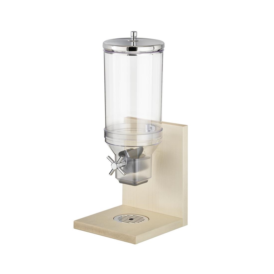 DISPENSER CEREAIS PLÁSTICO/INOX BASE MADEIRA 4,5L 21X20CM H55,5CM -PDE45%
