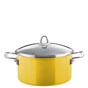 CAÇAROLA ALTA INDUÇÃO AÇO ESMALTADO TAMPA VIDRO Ø26CM H15CM 6,3L NEO AMARELA