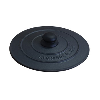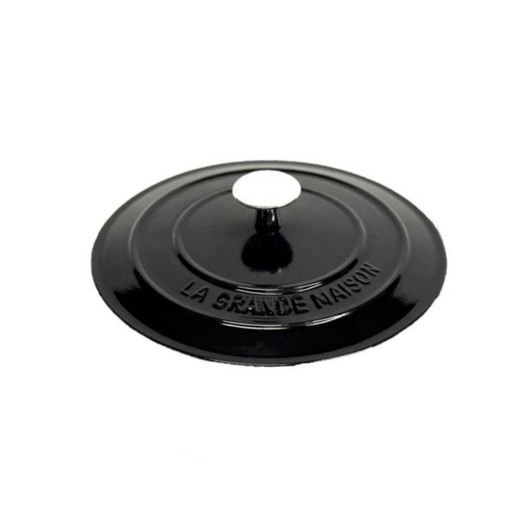 MINI TAMPA FERRO FUNDIDO Ø10CM POMEL BAQUELITE ESMALTE PRETO FOSCO GRAND CHEF -MSE-