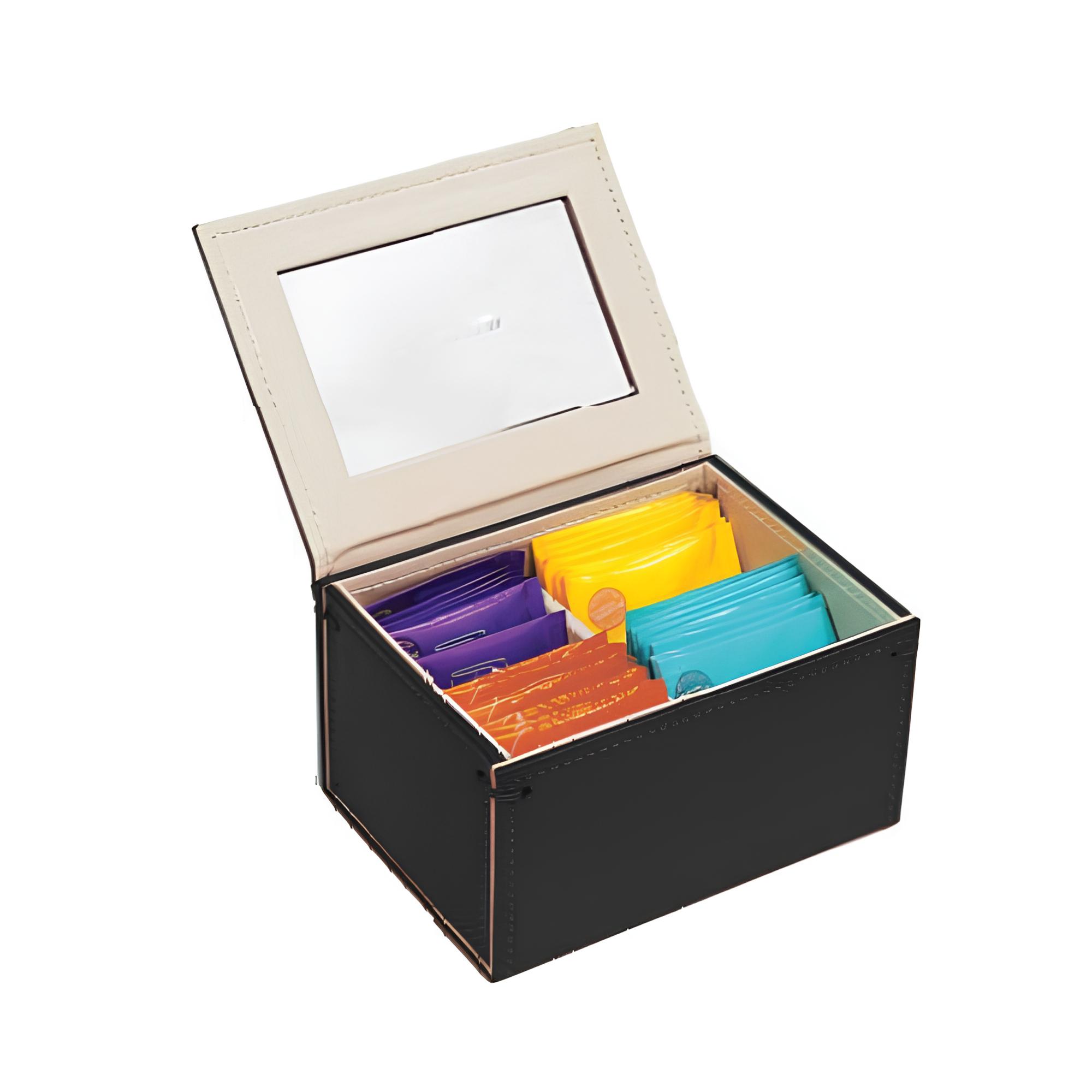 CAIXA CHÁ MDF/COURO SINTÉTICO 16X12CM H9,5CM PRETA -PDE15%