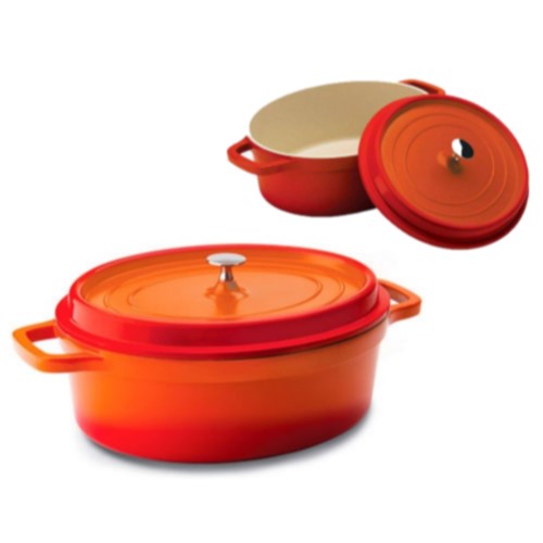 CAÇAROLA OVAL ALUMÍNIO FUNDIDO ESMALTADO 27X21CM H10CM LARANJA